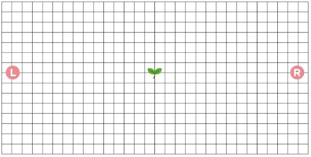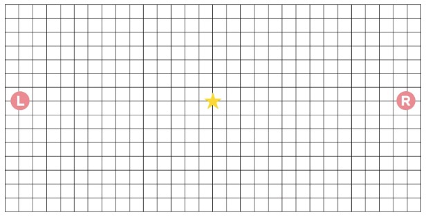 ※右目で見たときにR点、左目で見たときにL点が見えなくなるのは、「マリオット盲点(生理的暗点)」によるものです。異常ではありませんのでご安心ください。